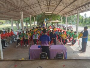 นายสายันต์ นามไพร ประธานสภา อบต.แคนใหญ่ พร้อมด้วยสมาชิก อบต. คณะครูโรงเรียนธรรมจารีนิวาส และคณะกรรมการกองทุนหลักประกันสุขภาพ อบต.แคนใหญ่ ประกอบด้วย